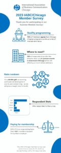 The results are in! We appreciate our members taking the time to provide feedback on the value the local chapter provides for your IABC membership. Here is a high-level overview of the results. Please contact a chapter leader at any time if you’d like to speak at an event, have an idea for a hot topic coffee club, or want to get more involved in chapter happenings. We are a volunteer-run chapter, and love to connect with our members!