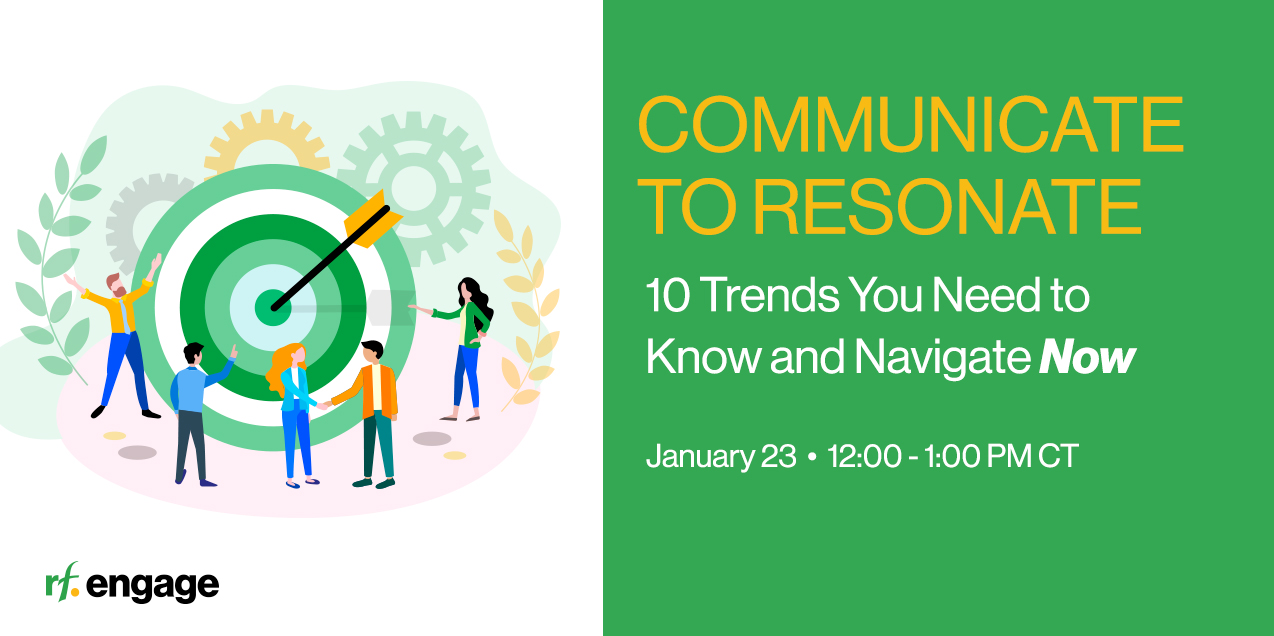 Join us on January 23 at noon for this IABC/Chicago webinar as Trish Nicolas, Executive Vice President at rf.engage, uncovers the top 10 trends you need to know and navigate now to achieve your corporate goals, be active stewards of the audience experience, and achieve optimum audience engagement and communications performance.