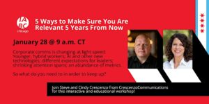 Corporate communications is changing at light speed. Younger, hybrid workers; AI and other new technologies; different expectations for leaders; shrinking attention spans; an abundance of metrics. All of these factors are reshaping the communications profession. So what do you need to in order to keep up? Join Steve and Cindy Crescenzo for this interactive and educational workshop!