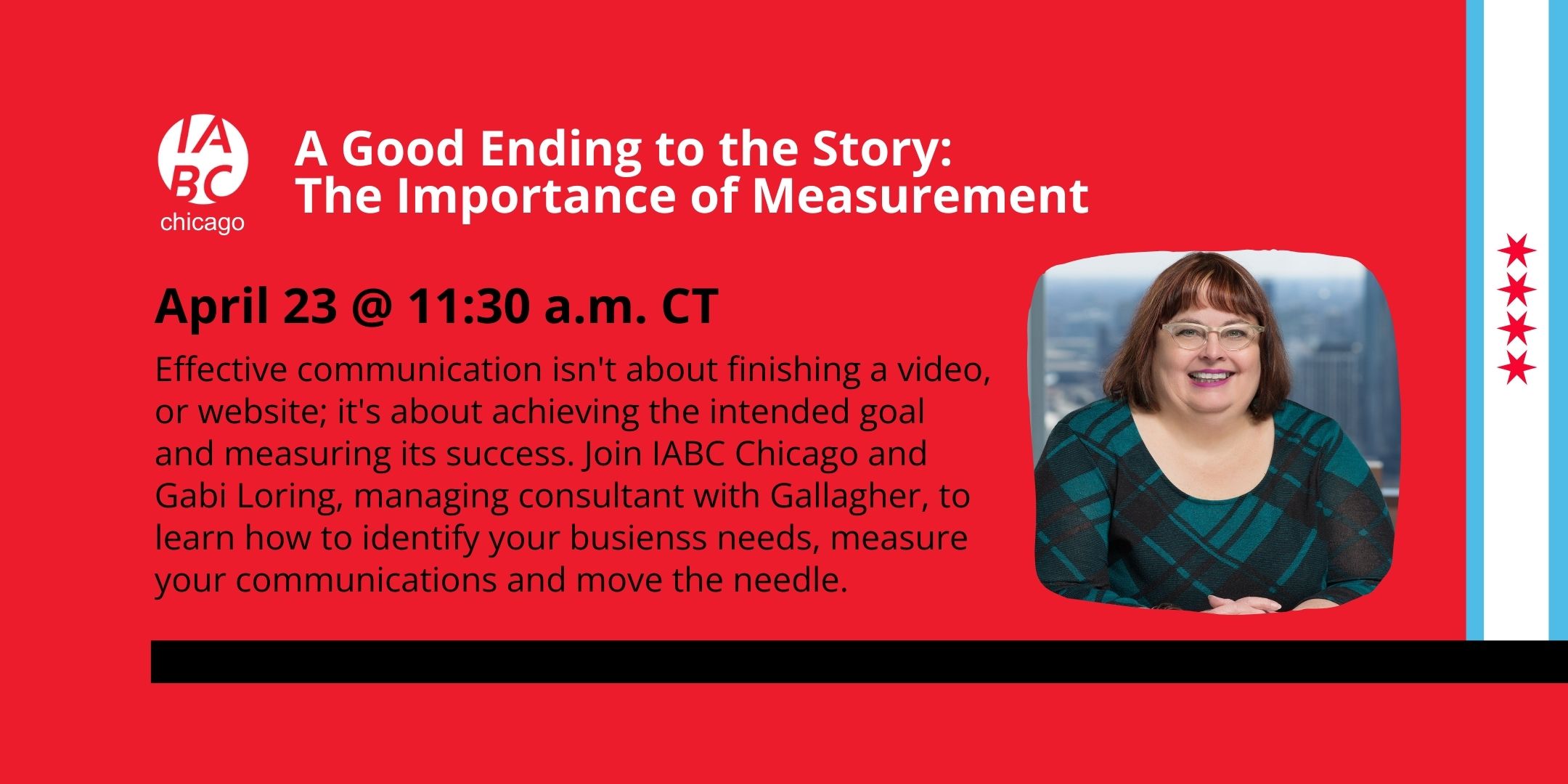 A long-time IABC volunteer, Gabi has served as IABC DEI Committee Chair, IABC Awards Committee Chair and as Chicago Gold Quill Awards Blue Ribbon Panel Chair for 8 years. A former IABC Chicago President, she received the IABC Chair’s Award in 2024 for her work serving on the IABC Organizational Design Task Force 2.0 and IABC Chicago Karen Utterback Volunteer Award in 2017.