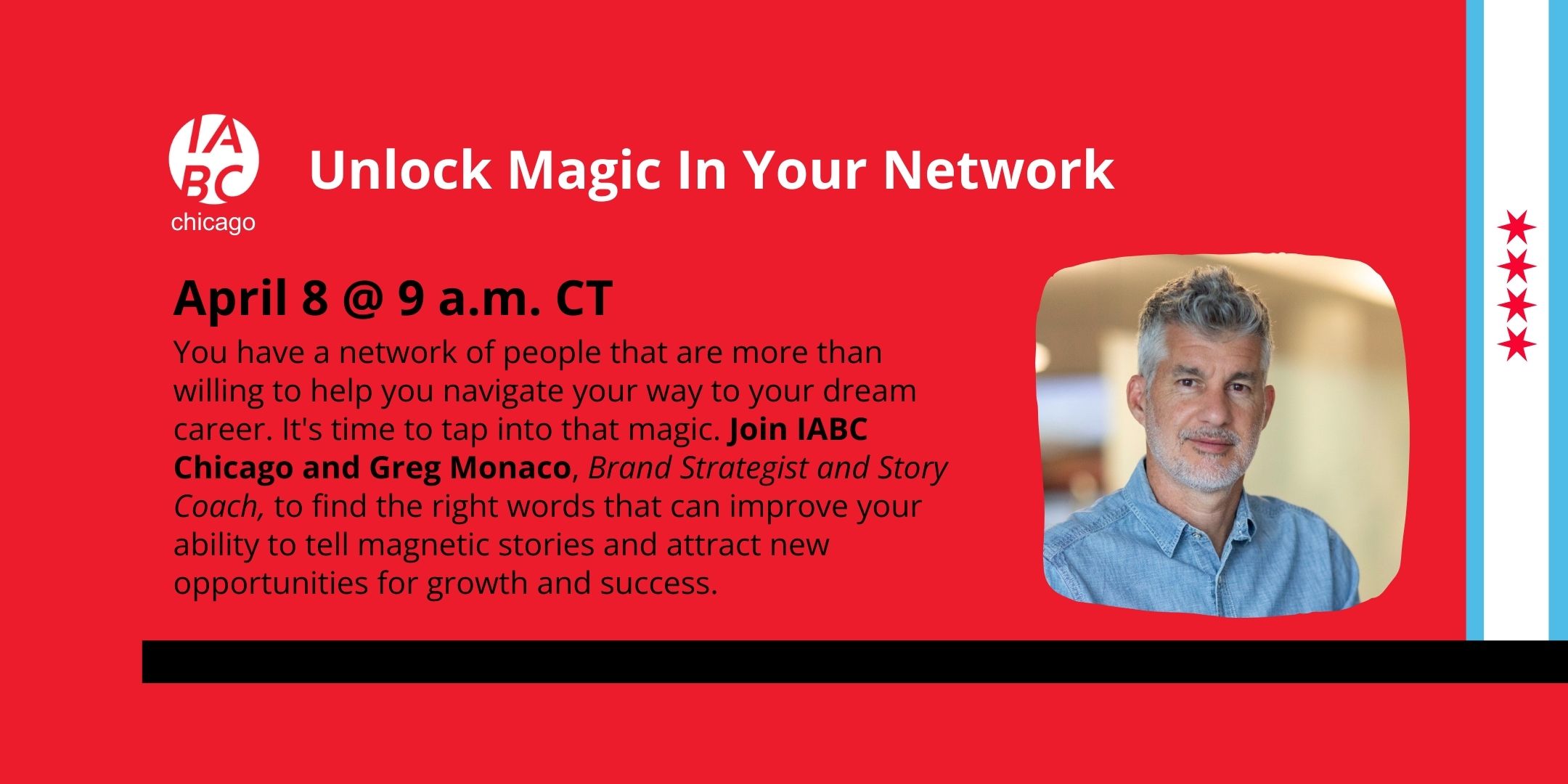 Join IABC/Chicago and Greg Monaco, Brand Strategist and Story Coach, to find the right words that can improve your ability to tell magnetic stories and attract new opportunities for growth and success. Walkaway with a template you can apply to connecting with anyone you meet moving forward.