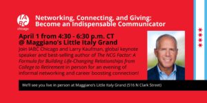 Join IABC/Chicago for an after work event at Maggiano’s in River North, as we welcome Larry Kaufman, Regional Managing Director for Jefferson Wells, a LinkedIn international speaker and trainer and he will s