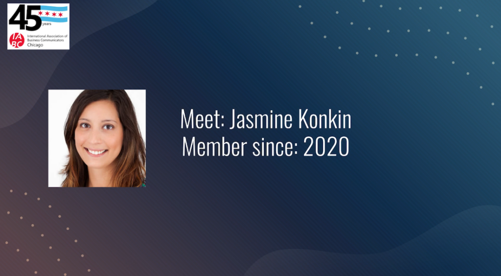 Sponsorship Director Jasmine Konkin reengaged with IABC/Chicago after recently relocating from the East Coast. Watch Jasmine’s video to learn about her favorite IABC experience so far and #1 tip for new members.